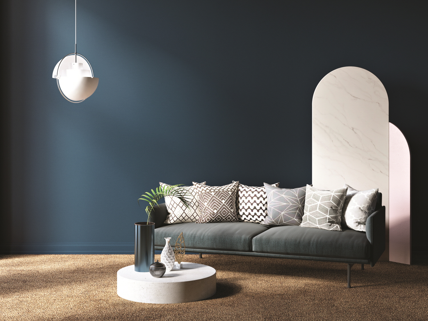 Rich solid color schemes create trendy and sophisticated design as well as refined style of space.